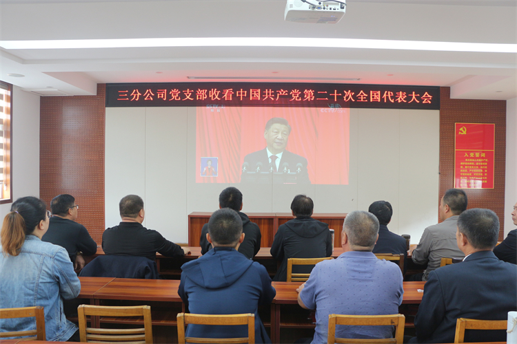 三分公司党支部组织党员、入党积极分子、管理骨干集中收看党的二十大开幕会