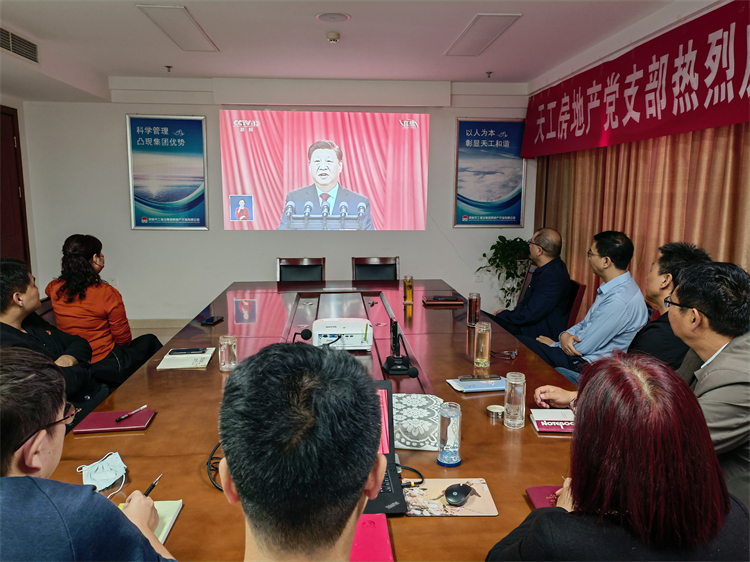 天工房地产公司党支部组织全体党员集中收听收看党的二十大开幕会